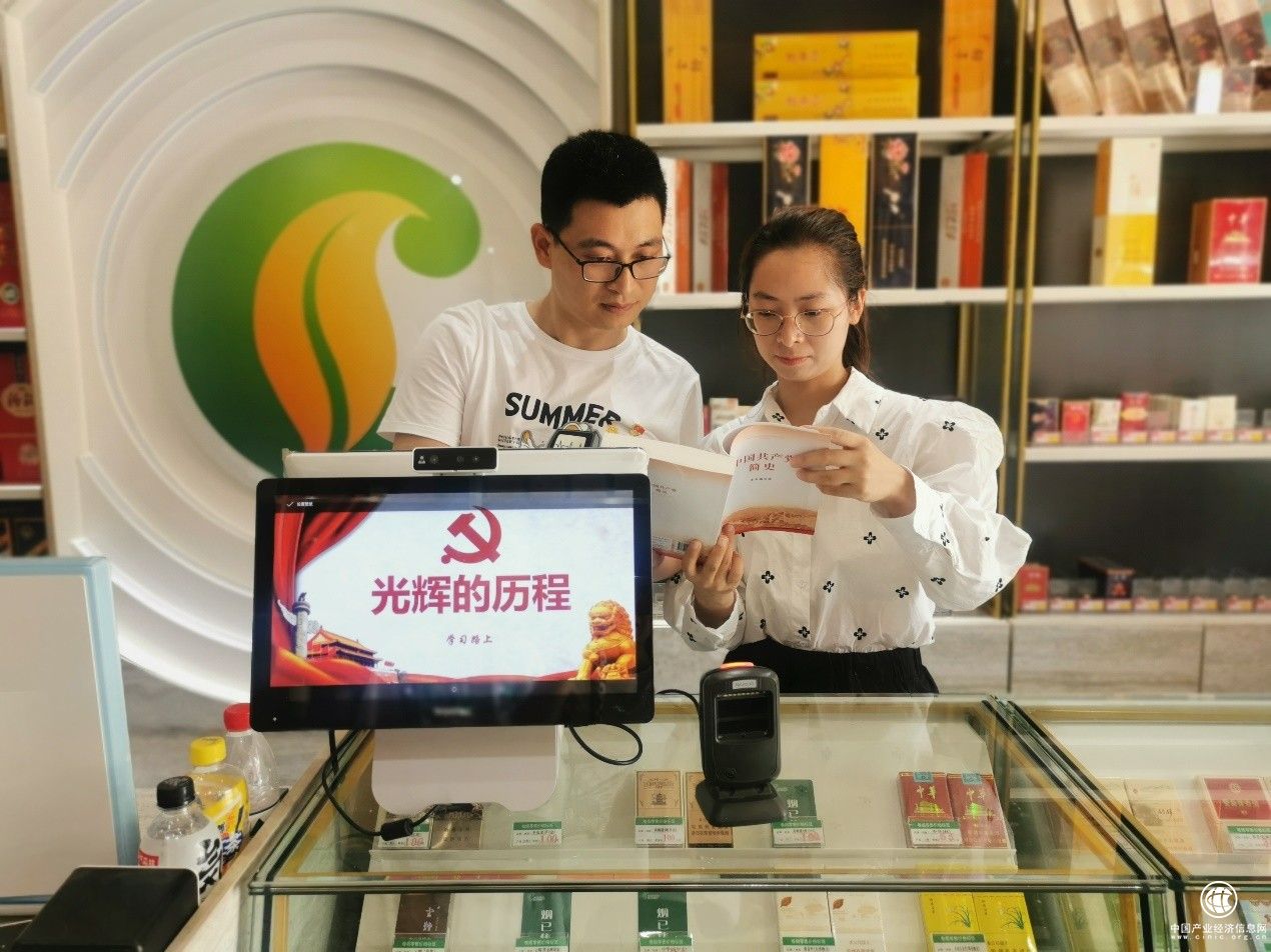 圖為平湖市煙草專賣局客戶經(jīng)理與黨員零售客戶一起學(xué)習(xí)黨史。