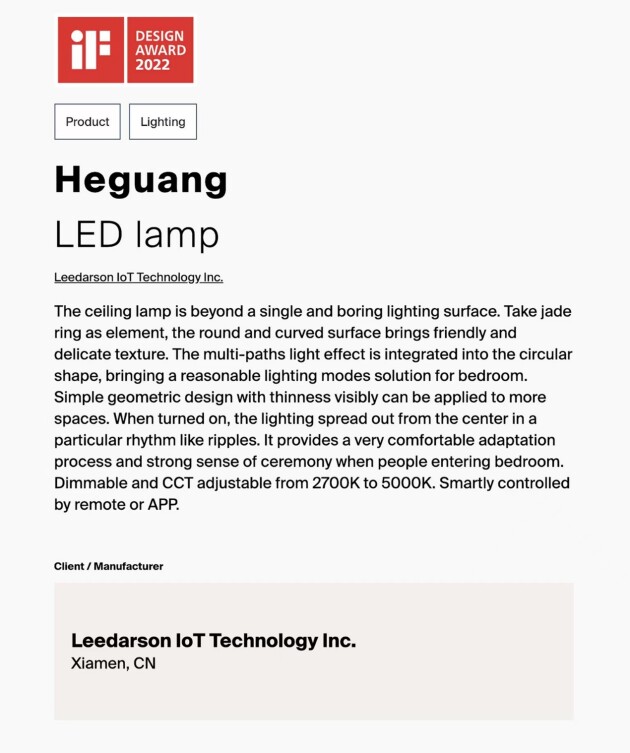 本次「合光」吸頂燈摘得iF這一權(quán)威大獎,代表立達信原創(chuàng)設計實力再次獲得世界高度認可。