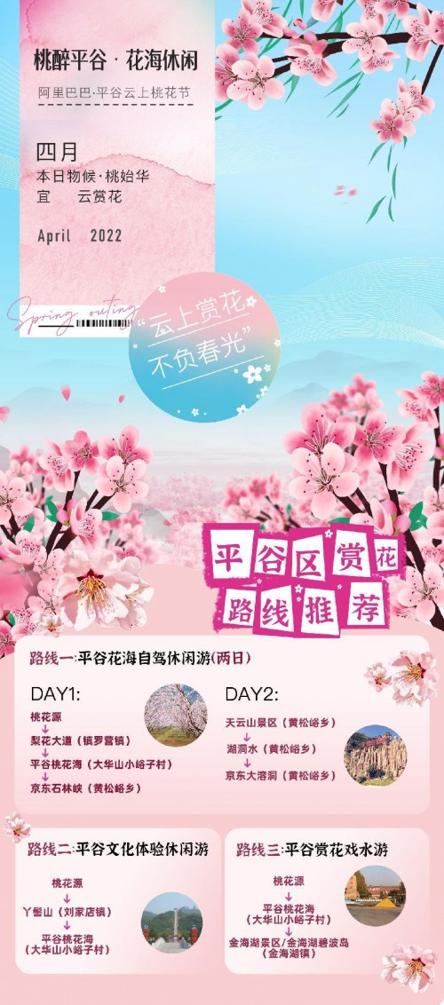這也正是今年桃花節(jié)的目標。據(jù)了解,今年桃花節(jié)期間,北京市平谷區(qū)人民政府將聯(lián)合阿里巴巴集團,通過整合全域旅游休閑資源,在商業(yè)和技術力量的共同加持下,開展云上桃花節(jié)系列活動,以桃為媒,用不同形式向全國各地朋友展現(xiàn)平谷的春日美景和桃花文化,為大家獻上一場跨越時空的云端盛宴。