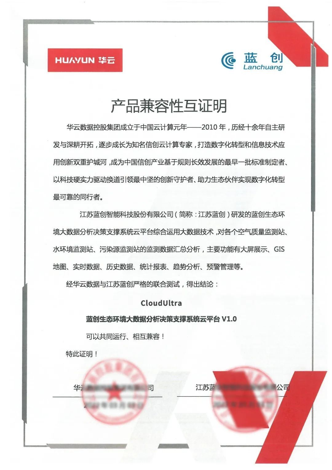為持續(xù)給環(huán)境保障工作提供強(qiáng)有力的智能化支撐,近日,華云數(shù)據(jù)(微信號(hào):chinac_com)與江蘇藍(lán)創(chuàng)智能科技股份有限公司(以下簡(jiǎn)稱“藍(lán)創(chuàng)”)完成產(chǎn)品兼容互認(rèn)證。本次兼容性互認(rèn)證經(jīng)華云數(shù)據(jù)與藍(lán)創(chuàng)聯(lián)合測(cè)試得出:華云數(shù)據(jù)CloudUltra與藍(lán)創(chuàng)生態(tài)環(huán)境大數(shù)據(jù)分析決策支撐系統(tǒng)云平臺(tái)相互兼容,功能穩(wěn)定運(yùn)行,產(chǎn)品體驗(yàn)良好。