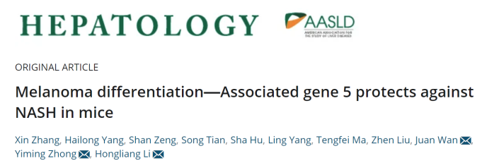 4月,李紅良團(tuán)隊(duì)在Hepatology發(fā)表題為“Melanoma differentiation-Associated gene 5 protects against NASH in mice”的研究論文。該研究發(fā)現(xiàn)了黑色素瘤分化相關(guān)基因5(MDA5)在NASH發(fā)展中的作用,并且揭示了其核心分子機(jī)制,研究結(jié)果支持MDA5作為ASK1的重要調(diào)節(jié)因子,在 NASH的進(jìn)展中發(fā)揮重要的調(diào)控作用,有望成為NASH藥物開(kāi)發(fā)的新靶點(diǎn)。