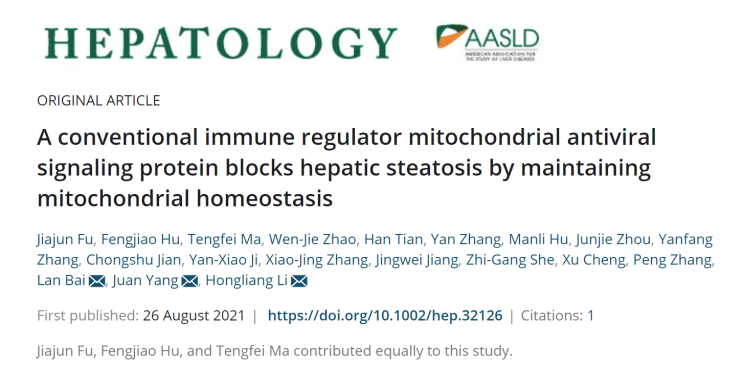 2月,李紅良團(tuán)隊(duì)在Hepatology發(fā)表題為“A conventional immune regulator mitochondrial antiviral signaling protein blocks hepatic steatosis by maintaining mitochondrial homeostasis”的研究論文。研究發(fā)現(xiàn),在肝細(xì)胞中,MAVS通過(guò)與電壓依賴(lài)性陰離子通道2調(diào)節(jié)線(xiàn)粒體功能,在預(yù)防NAFLD方面發(fā)揮重要作用,并支持靶向MAVS有望成為代表治療NAFLD的途徑可能性。