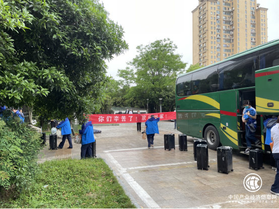 下午14時許,數(shù)輛大巴車緩緩駛?cè)敫綦x點,面對援滬歸來的英雄們,家鄉(xiāng)的人民也為他們拉起橫幅歡迎英雄們回家,而我們作為負責(zé)做好管理和服務(wù)的工作人員對他們的歸來除了敬佩之外,更是一種使命。