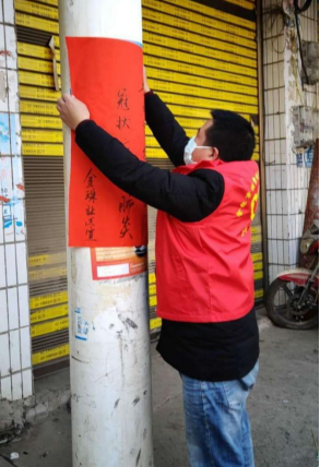 零售戶志愿者粘貼社區(qū)防疫宣傳語