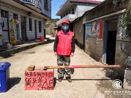 零售戶志愿者在村級(jí)卡點(diǎn)值班登記排查外來車輛