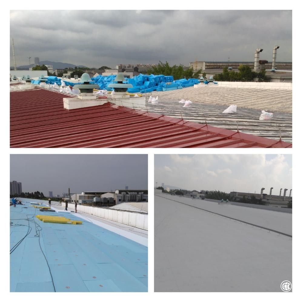 在碳達(dá)峰、碳中和背景下,臺(tái)實(shí)在五年前已經(jīng)開始做外露光伏屋面,工人們?cè)跇O少案例的情況下,摸索出一條道路,采用外露TPO進(jìn)行屋面防水施工,順利完成了項(xiàng)目,并且通過了五年的質(zhì)保期,得到了委托方的一致好評(píng)。