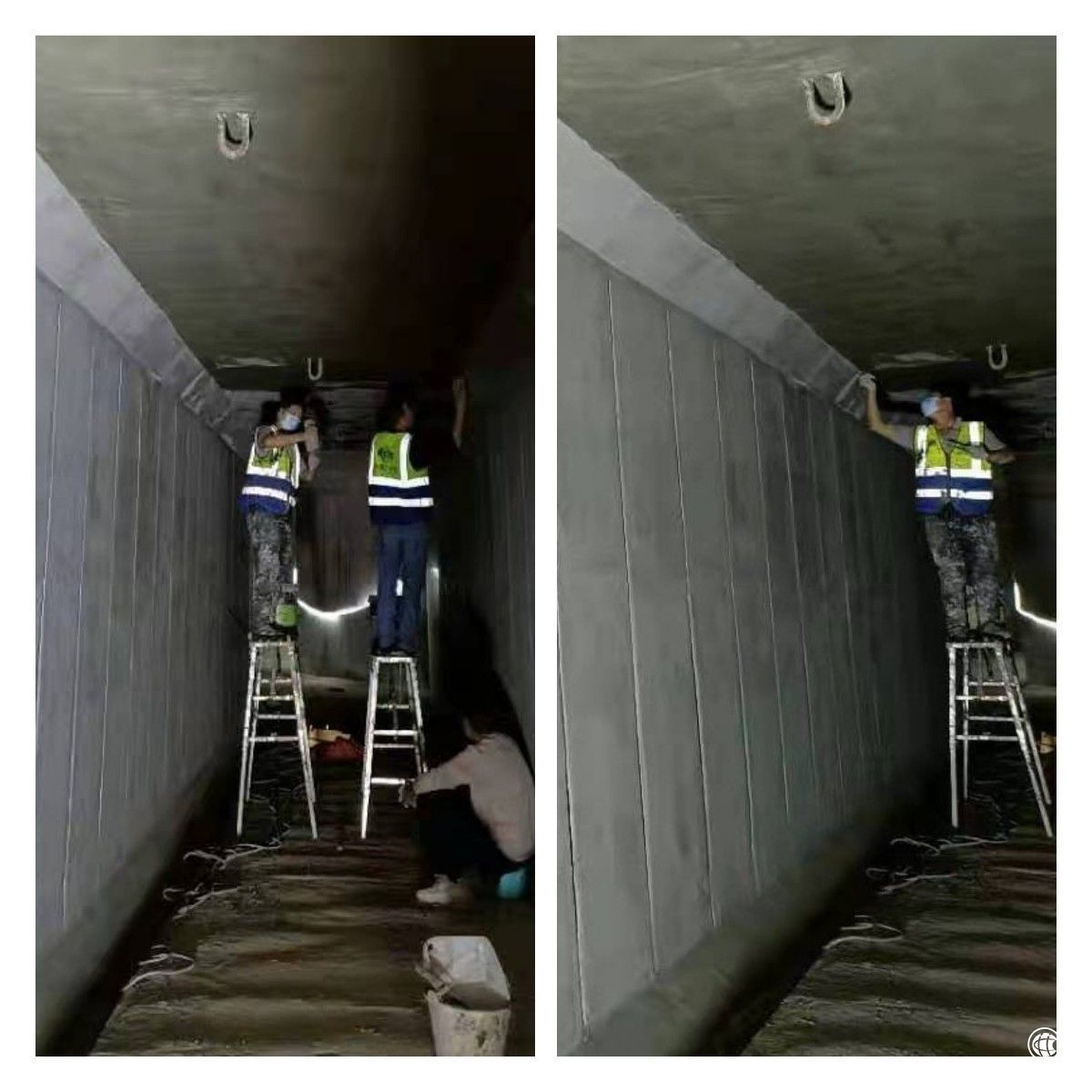 該管廊四周環(huán)南海,全長近40公里,海水壓力大,治理前嚴(yán)重透水,臺(tái)實(shí)緊急組建施工隊(duì)伍奔赴現(xiàn)場(chǎng),現(xiàn)場(chǎng)大面積滲漏灌入瓢潑大水,積水及腰,經(jīng)過臺(tái)實(shí)人不辭勞苦搶險(xiǎn)治理,管廊功能得以恢復(fù)如初。