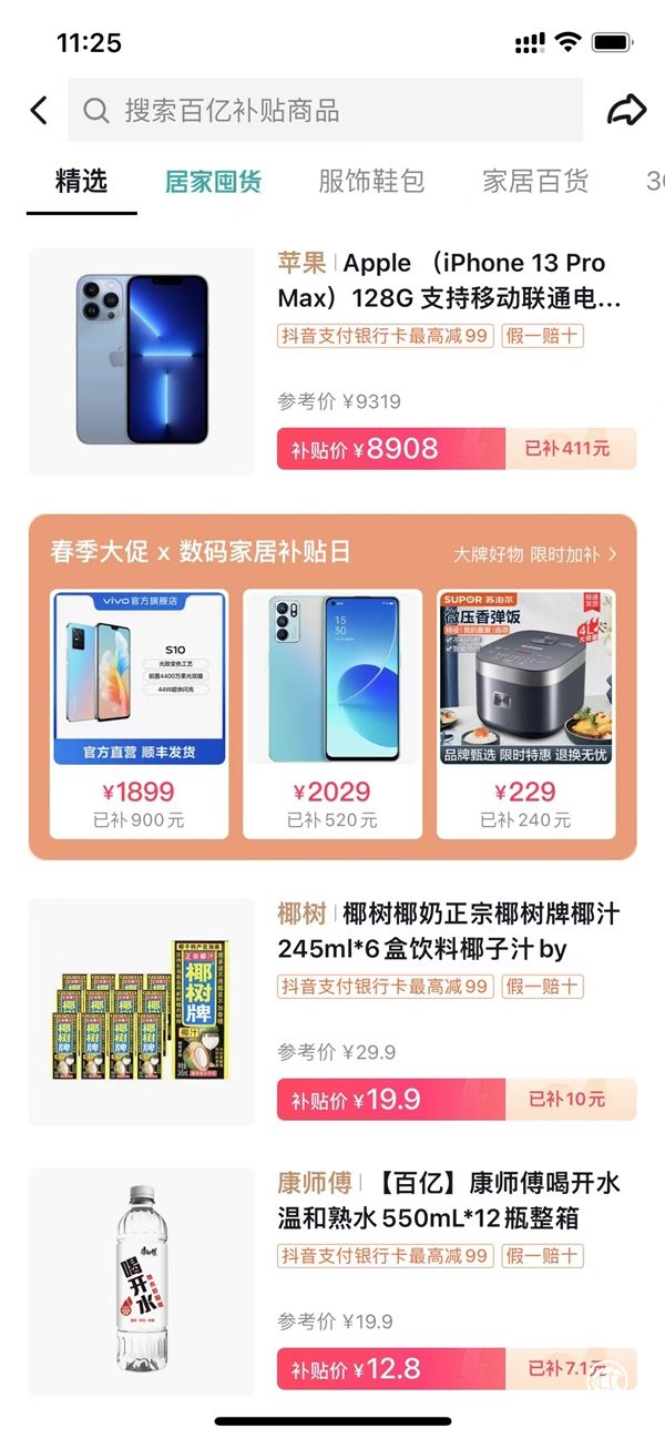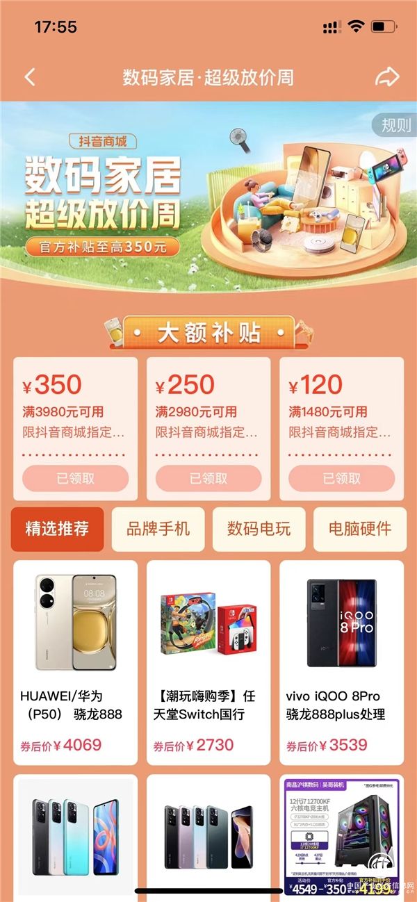 此外,「抖音商城」為減少用戶決策時(shí)間,在「數(shù)碼家居超級(jí)放價(jià)周」活動(dòng)中還推出了多維官方補(bǔ)貼: