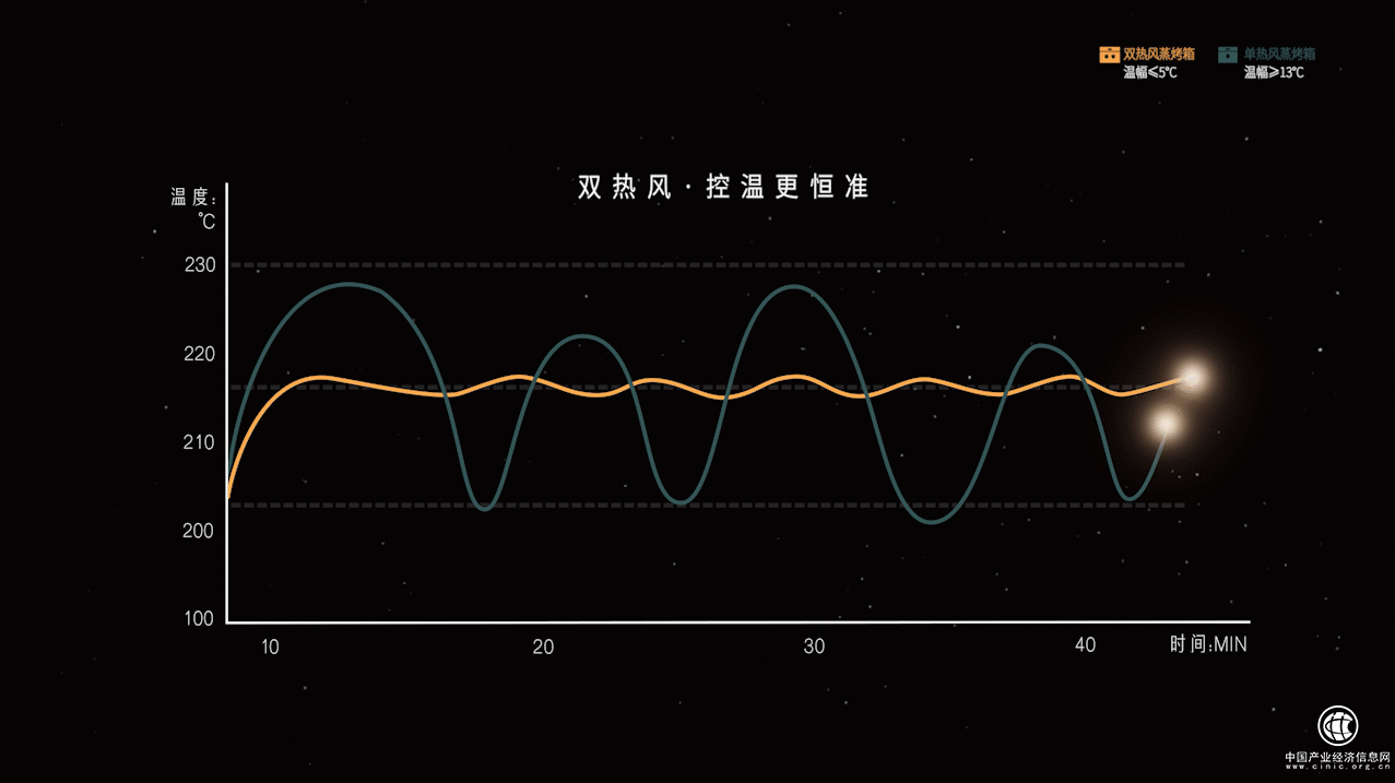 所謂“雙熱風(fēng)”,并不是簡單地將背部的離心風(fēng)機從一個升級為兩個,而是在風(fēng)機數(shù)量增加的基礎(chǔ)上,還讓它們分別以順時針、逆時針雙向旋轉(zhuǎn),再搭配背板的黃金熱風(fēng)孔、專業(yè)四組烤管等,形成一套完善均衡的全驅(qū)熱力系統(tǒng),從而提升腔內(nèi)熱流循環(huán)效率,實現(xiàn)更加均勻的溫場控制。