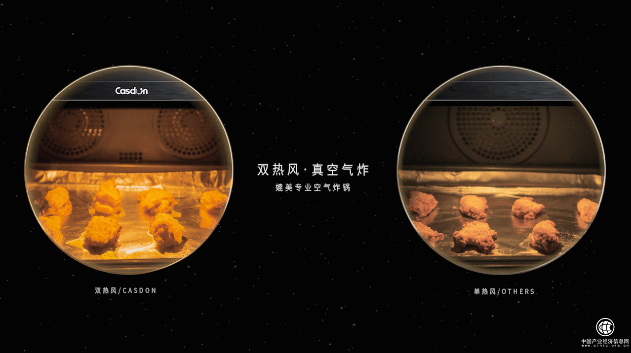 近幾年,空氣炸鍋是最受消費者青睞的小廚電產(chǎn)品之一,這一方面是因為明火烹飪產(chǎn)生的高溫油煙對人們的皮膚和呼吸系統(tǒng)都具有重大危害,而空氣炸鍋無油煙化的特性則有效地避免了這個問題,另一方面是因為用空氣炸鍋制作美食,幾乎不需要放油,烹飪速度還特別快,這與現(xiàn)代消費者追求低脂健康、使用方便的理念不謀而合。在空氣炸鍋市場火爆的推動下,空氣炸功能在很多蒸烤類產(chǎn)品中都有所配置,但使用體驗卻不盡如人意。究其根本,問題在于這些產(chǎn)品的蒸烤技術(shù)不足以支撐空氣炸的高速空氣循環(huán)原理。但對雙熱風(fēng)技術(shù)而言,高速空氣循環(huán)正是它的特色所在??梢哉f,雙熱風(fēng)空氣炸徹底顛覆了傳統(tǒng)空氣炸的技術(shù)水準(zhǔn),讓蒸烤設(shè)備實現(xiàn)了真正的空氣炸效果,脫脂效果更出色,而且成功率接近100%。