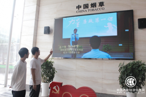 圖為:平湖市煙草專賣局青年員工通過電子大屏觀看清廉視頻