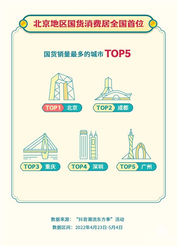 數(shù)據(jù)顯示,國(guó)貨消費(fèi)數(shù)量最多的城市是北京,緊隨其后的是成都、重慶、深圳、廣州。