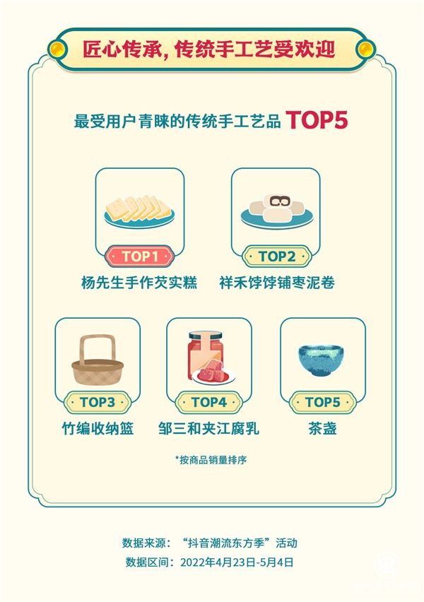 國(guó)貨發(fā)展的過(guò)程中,傳統(tǒng)手工藝品、非遺好物也借助興趣電商,被越來(lái)越多人看到、購(gòu)買。數(shù)據(jù)顯示,楊先生手作芡實(shí)糕、祥禾餑餑鋪棗泥卷、竹編收納籃、鄒三和夾江腐乳、茶盞瓷器等傳統(tǒng)手工藝商品,深受消費(fèi)者喜愛,銷量可觀。