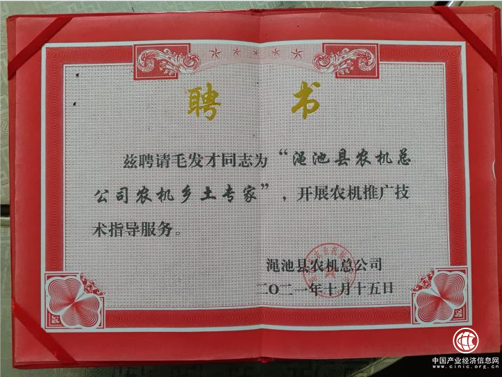 2009年,毛發(fā)才和村里11人一起成立了農(nóng)機專業(yè)合作社,隨著拔稈機、起壟機、微耕機、覆膜機、培土機的購入,他的煙田實現(xiàn)了耕、種、收所有環(huán)節(jié)機械化,大大提高了勞動效率,降低了生產(chǎn)成本。農(nóng)忙季節(jié),他還到周邊的洛寧、宜陽、盧氏、靈寶等地為當?shù)剞r(nóng)戶提供旋耕、蓋膜、拔桿等服務(wù),一年下來,收入十分可觀??恐@些收入,他家里供出了3個大學(xué)生,也憑著一身干勁和一手好技術(shù),他在致富奔小康的路上越走越寬,2021年他本人更是被聘請為“澠池縣農(nóng)機鄉(xiāng)土專家”,成為遠近聞名的“明星”人物。