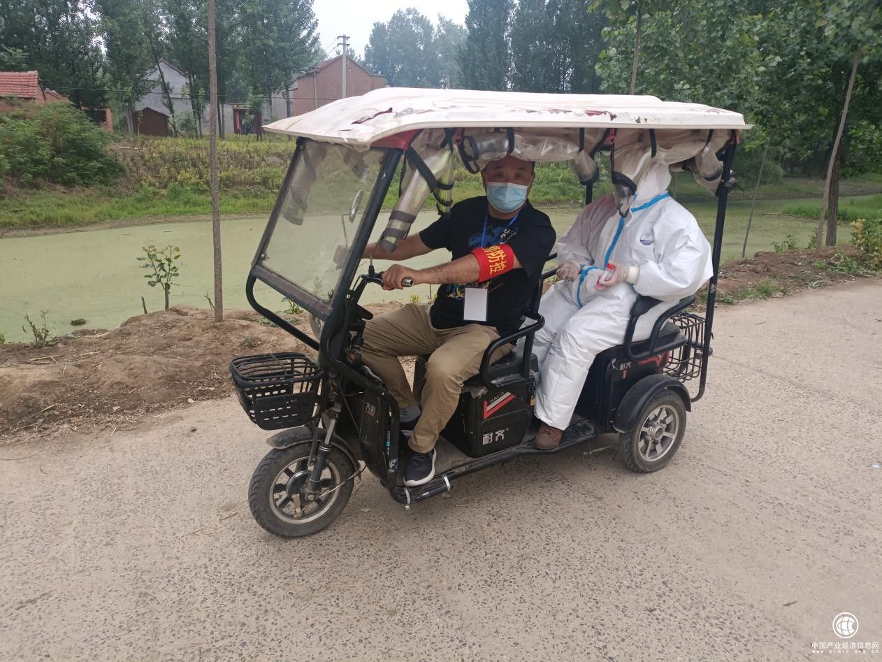 5月5日至10日,每日針對袁莊、河灣兩個行政村418戶1555人的全員核酸檢測工作,對醫(yī)護人員來說是個很大的心理和體力考驗。為了減輕醫(yī)護人員的工作負擔和壓力,武海軍同志每日駕駛?cè)嗆囕d著醫(yī)護人員登門入戶為群眾做核檢工作,群眾都親切地稱他為“三輪車書記”。