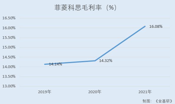 據(jù)東方財富Choice數(shù)據(jù),2019-2021年,菲菱科思的毛利率分別為14.14%、14.32%、16.08%。