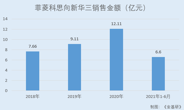 據(jù)招股書,2018-2020年及2021年1-6月,菲菱科思向新華三的銷售額分別為7.66億元、9.11億元、12.11億元、6.6億元。