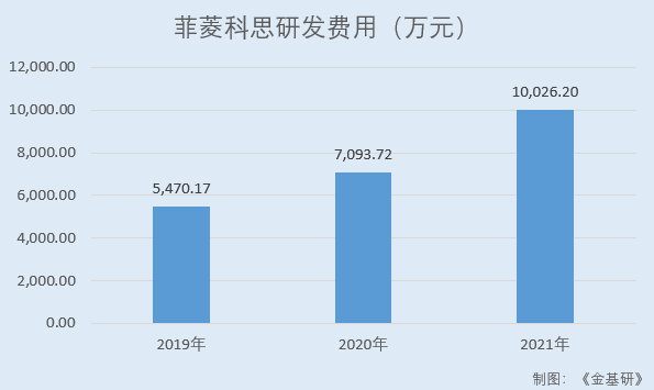 據(jù)東方財富Choice數(shù)據(jù),2019-2021年,菲菱科思研發(fā)費用分別為5,470.17萬元、7,093.72萬元、10,026.2萬元,復(fù)合增長率為35.38%。