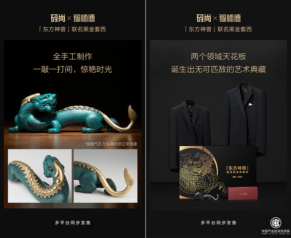 近日,智能定制男裝創(chuàng)領者碼尚聯手“國內銅藝術知名品牌”銅師傅,推出聯名藏品——東方神獸·聯名限量黑金套西。碼尚在此款產品中融入中國傳統(tǒng)元素,并采用智能定制算法、高定工藝,將碼尚的現代科技審美與銅師傅的傳統(tǒng)文化藝術相融合,讓穿著者充分地自我表達,更好的傳遞“定制,不止于合身”的品牌理念。同時,碼尚也希望以此助力中國傳統(tǒng)文化的弘揚與傳承,以服飾為載體,向世界展示中華傳統(tǒng)文化的魅力與故事。