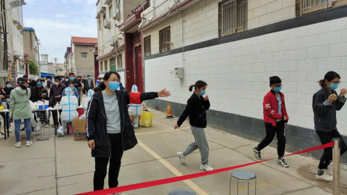 “請(qǐng)大家?guī)Ш蒙矸葑C,自覺保持2米距離,從兩邊繞行,做完核酸請(qǐng)及時(shí)離開現(xiàn)場,不要逗留!”