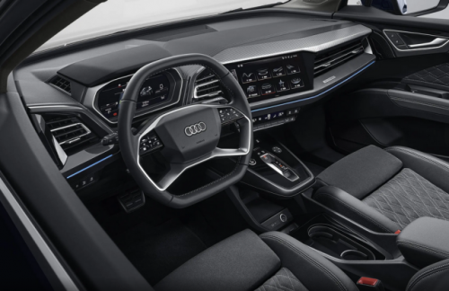 在車內(nèi),奧迪Q4 e-tron采用奧迪家族最新的內(nèi)飾布局,車內(nèi)主要由0.25英寸的奧迪虛擬座艙增強版以及11.6英寸MMI觸摸屏組成,支持23個主流APP運行,其雙平底多功能真皮運動方向盤的造型很大,內(nèi)置了高精度震動馬達,可以帶來不錯的多功能觸控操作手感。另外,奧迪Q4 e-tron配備了RS e-tron GT同款“寶石雕刻”換擋機構(gòu)等。