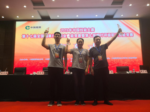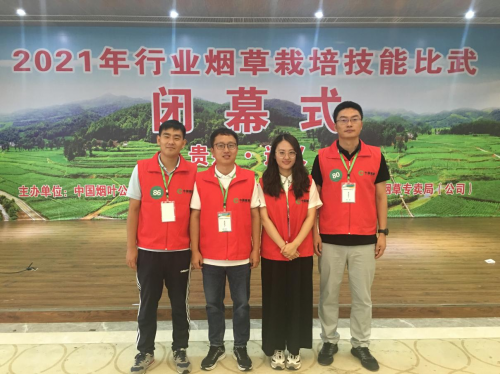 張樹偉(左二)、劉新源(右一)在2021年煙草行業(yè)煙草栽培技能比武中分獲第一名和第七名佳績。