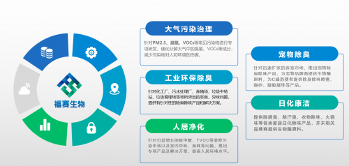 福賽生物研發(fā)的復合生物酶產品,涵蓋人居凈化、寵物除臭、日化康潔、環(huán)保除臭、大氣污染治理、農業(yè)等多個領域,并已經孵化自有品牌“FAIRSKY” “福賽?!?,實現(xiàn)了從原料供應、成品銷售、OEM/ODM、項目開發(fā)等多產業(yè)鏈的業(yè)務提供能力。