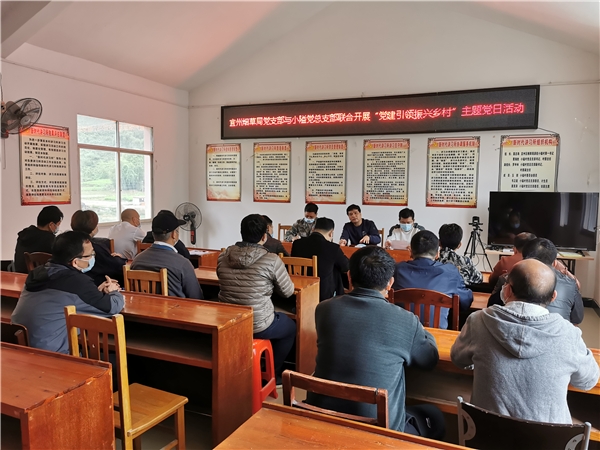 圖為:宜州煙草黨支部與小隘村黨支部聯(lián)合開展“黨建引領(lǐng)振興鄉(xiāng)村”主題黨日活動。(覃業(yè)軍 攝)