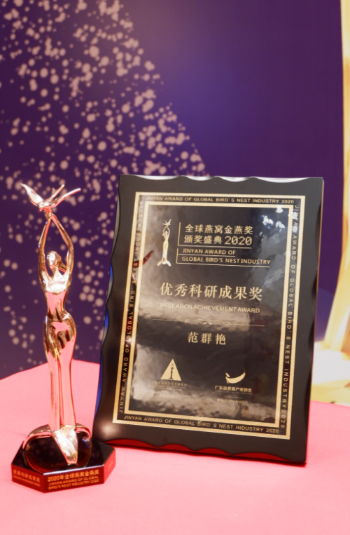 范群艷積極主動(dòng)帶領(lǐng)團(tuán)隊(duì)進(jìn)行燕窩相關(guān)研究項(xiàng)目,推動(dòng)產(chǎn)生眾多優(yōu)秀科研成果,為燕窩產(chǎn)品的創(chuàng)新發(fā)展做出杰出貢獻(xiàn)。在“2020年度全球燕窩金燕獎(jiǎng)”頒獎(jiǎng)典禮,范群艷榮獲“優(yōu)秀科研成果獎(jiǎng)”;在2020第四屆中國食品產(chǎn)業(yè)發(fā)展年會(huì),范群艷作為主要完成人之一的項(xiàng)目——《即食燕窩系列產(chǎn)品的關(guān)鍵技術(shù)創(chuàng)新及其產(chǎn)業(yè)化》榮獲“中國食品工業(yè)協(xié)會(huì)科學(xué)技術(shù)獎(jiǎng)特等獎(jiǎng)”。懷揣著對(duì)燕窩事業(yè)的執(zhí)著追求和滿腔赤忱,范群艷潛心專研,斬獲了諸多行業(yè)榮譽(yù),取得協(xié)會(huì)認(rèn)可;同時(shí),作為燕之屋副總經(jīng)理、研發(fā)總監(jiān),范群艷以自身專業(yè)的研發(fā)能力帶領(lǐng)科研團(tuán)隊(duì),扎實(shí)做好技術(shù)和產(chǎn)品工作,不斷打磨提升品牌的核心競(jìng)爭(zhēng)力,為市場(chǎng)提供更專業(yè)、更優(yōu)質(zhì)的燕窩產(chǎn)品,推動(dòng)燕窩行業(yè)的高質(zhì)量發(fā)展。