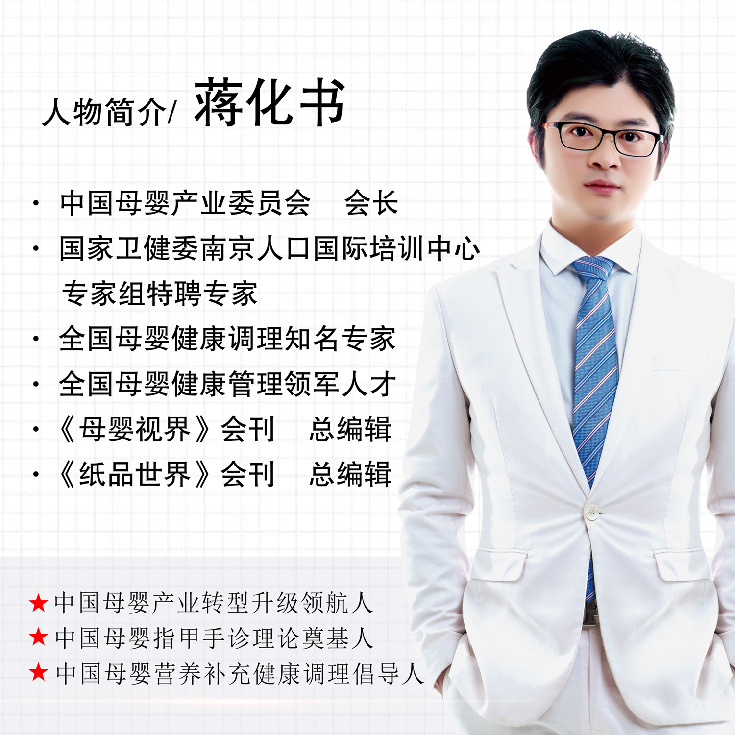 中國(guó)母嬰產(chǎn)業(yè)委員會(huì)會(huì)長(zhǎng)蔣化書(shū)是國(guó)家衛(wèi)健委南京人口國(guó)際培訓(xùn)中心專(zhuān)家組特聘專(zhuān)家,全國(guó)母嬰健康領(lǐng)軍管理人才,《母嬰視界》會(huì)刊總編,全國(guó)母嬰健康調(diào)理知名專(zhuān)家,中國(guó)母嬰產(chǎn)業(yè)轉(zhuǎn)型升級(jí)領(lǐng)航人、中國(guó)母嬰指甲手診理論奠基人、中國(guó)母嬰營(yíng)養(yǎng)補(bǔ)充健康調(diào)理倡導(dǎo)人。早在2018年,中國(guó)母嬰產(chǎn)業(yè)委員會(huì)會(huì)長(zhǎng)蔣化書(shū)就提出,母嬰店要轉(zhuǎn)型升級(jí)為母嬰健康調(diào)理館,從單一售賣(mài)母嬰產(chǎn)品,轉(zhuǎn)型升級(jí)到母嬰健康調(diào)理上來(lái)。