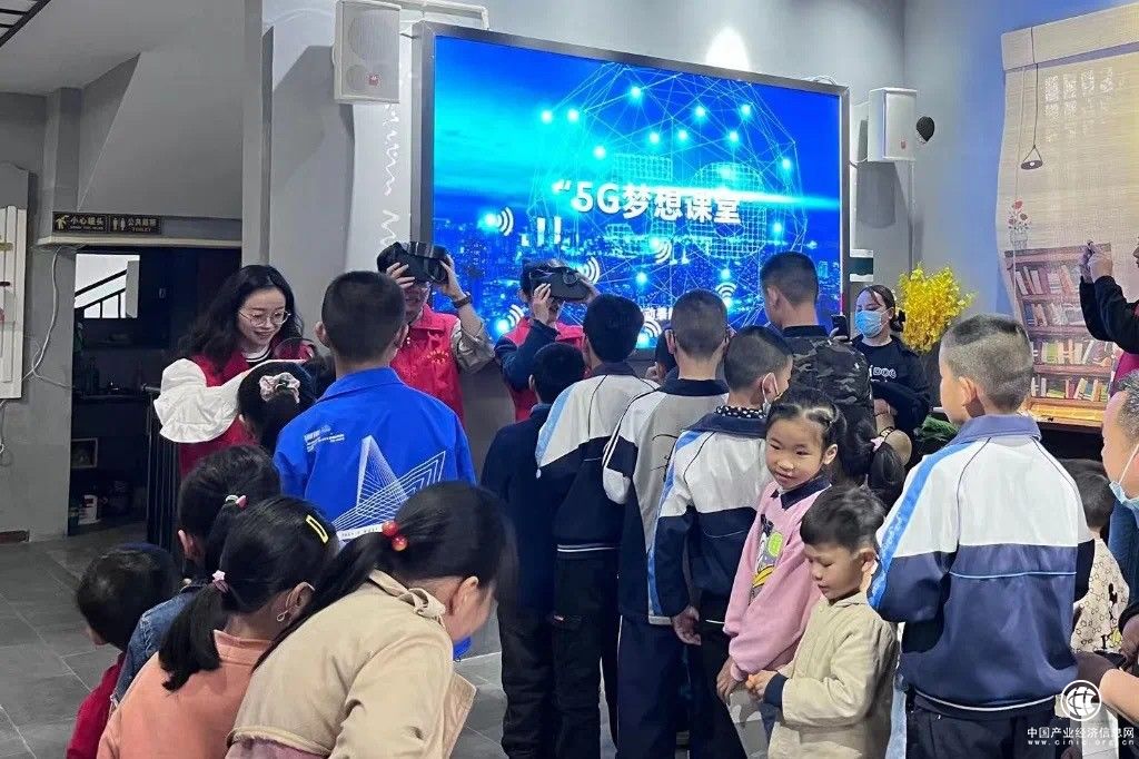 (志愿者為留守兒童開展“5G夢想課堂”)