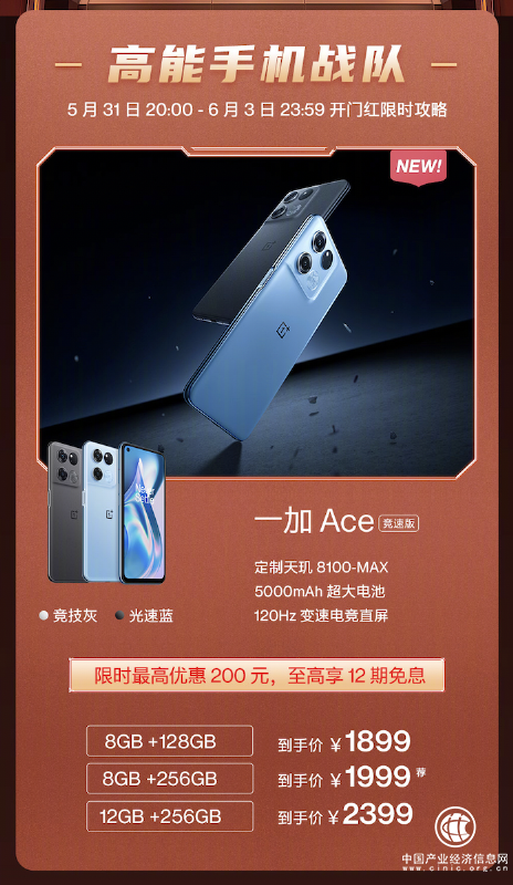 5月31日晚8點(diǎn),一加Ace競(jìng)速版高能開售,到手價(jià)1899元起。除Ace競(jìng)速版外,618活動(dòng)期間購(gòu)買一加產(chǎn)品可享受限時(shí)福利價(jià),一加 Ace低至2499元起,一加 10 Pro低至4199元起,一加 9RT低至2449元起,IoT產(chǎn)品全線直降低至169元起。購(gòu)買還可享受免息分期、至6月30日的超長(zhǎng)周期價(jià)保等福利。同時(shí),用戶還可參與一加“百場(chǎng)5折福利“、直播抽百臺(tái)手機(jī)大獎(jiǎng)”、“一加錦鯉全家桶”等驚喜活動(dòng)。