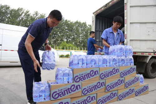 圖為:汛情期間到配送一線幫扶送貨