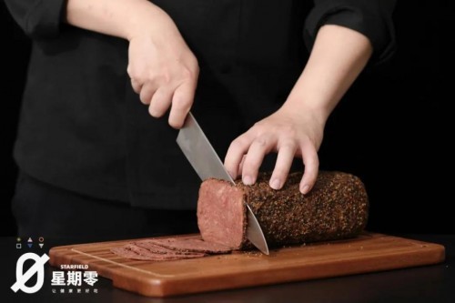 星期零大師植物牛肉片的厲害之處還在于,其口感上具有嚼勁,與真肉基本無差別。據(jù)介紹,這得益于「星期零」極具創(chuàng)新性的前沿技術(shù)“整肉塑形”。該技術(shù)的關(guān)鍵是采用“間斷式針織風(fēng)味法”和“精進(jìn)分子酶法交聯(lián)術(shù)”,更好地模擬牛肉的質(zhì)感。