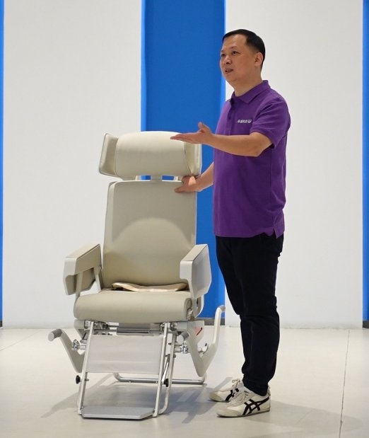經(jīng)記者多方探訪了解,這張?zhí)貏e的“護(hù)航椅”是中國航天為了航天員落地后能夠更好的進(jìn)行身體重力再適應(yīng)而向廣東中山的坐感科技公司專門定制的“減重力護(hù)航椅”。