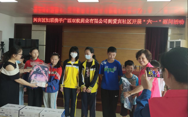 值此“六一”國(guó)際兒童節(jié)即將到來(lái)之際,來(lái)賓市興賓區(qū)婦聯(lián)攜手廣西雙蟻藥業(yè)有限公司到興賓區(qū)河西街道愛賓社區(qū)開展豐富多彩的“六一”兒童節(jié)慰問(wèn)活動(dòng),并為該社區(qū)15名留守(困境)兒童送上牛奶、書包、鉛筆盒等生活用品和學(xué)習(xí)用品,及節(jié)日的祝福,與孩子們提前度過(guò)一個(gè)難忘而快樂(lè)的節(jié)日。