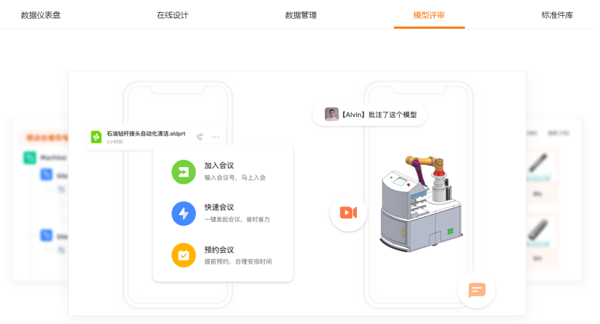 橙色云CRDE云研發(fā)平臺支持對內(nèi)多方協(xié)同。在云上工業(yè)設(shè)計(jì)軟件中,工程師可共同在線開展研發(fā)、共享、交流、變更、評審等工作,降低溝通協(xié)作成本,幫助企業(yè)突破原有能力、技術(shù)、地域和時(shí)空的限制,鏈接全國乃至全球各地的專業(yè)技術(shù)資源,為企業(yè)實(shí)施全場景、全方位、全過程的數(shù)字化轉(zhuǎn)型提供建議和落地服務(wù)。另外,云端協(xié)同工作人員異地技術(shù)方案展示、異地辦公、居家辦公、免安裝,三維圖紙內(nèi)直接發(fā)起視頻會(huì)議。