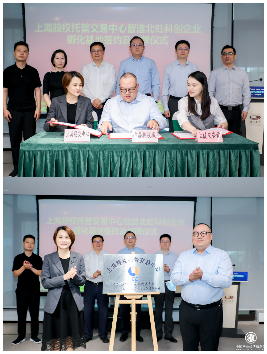 在參會領(lǐng)導(dǎo)和嘉賓的共同見證下,上海股權(quán)托管交易中心、上股交投資咨詢和臨港嘉定科技城公司一起簽署“智造北虹”科創(chuàng)企業(yè)孵化基地合作協(xié)議,并為上海股交中心智造北虹科創(chuàng)企業(yè)孵化基地揭牌。