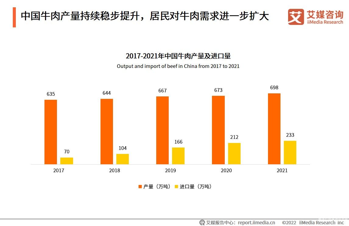 其次,從牛肉產(chǎn)量上來(lái)看,艾媒咨詢數(shù)據(jù)顯示,近十年來(lái),全球牛肉和小牛肉產(chǎn)量基本持平,2021年為5813萬(wàn)公噸,預(yù)計(jì)2022年將達(dá)到5869萬(wàn)公噸??傮w來(lái)看,疫情未對(duì)全球牛肉和小牛肉的產(chǎn)量產(chǎn)生較嚴(yán)重的影響。