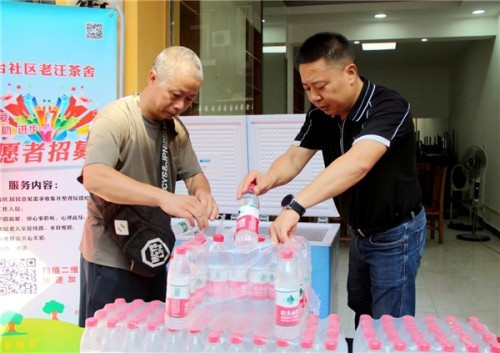 7月,“老汪茶社”全新開張。小區(qū)居民張應(yīng)山就在附近商圈經(jīng)營(yíng)一家煙酒店,退役多年仍不忘軍人本色,熱心快腸的張老板自掏腰包給新茶社送去純凈水和夏日飲料;不少居民主動(dòng)捐茶葉、捐水杯,還有人共享螺絲、扳手等修理用具,老汪茶社成了志愿服務(wù)和居民聯(lián)絡(luò)感情的“哨點(diǎn)”?!氨纫郧案鼘挸?、更熱鬧了!”質(zhì)樸的老汪激動(dòng)地說道,忍不住拍手叫好。