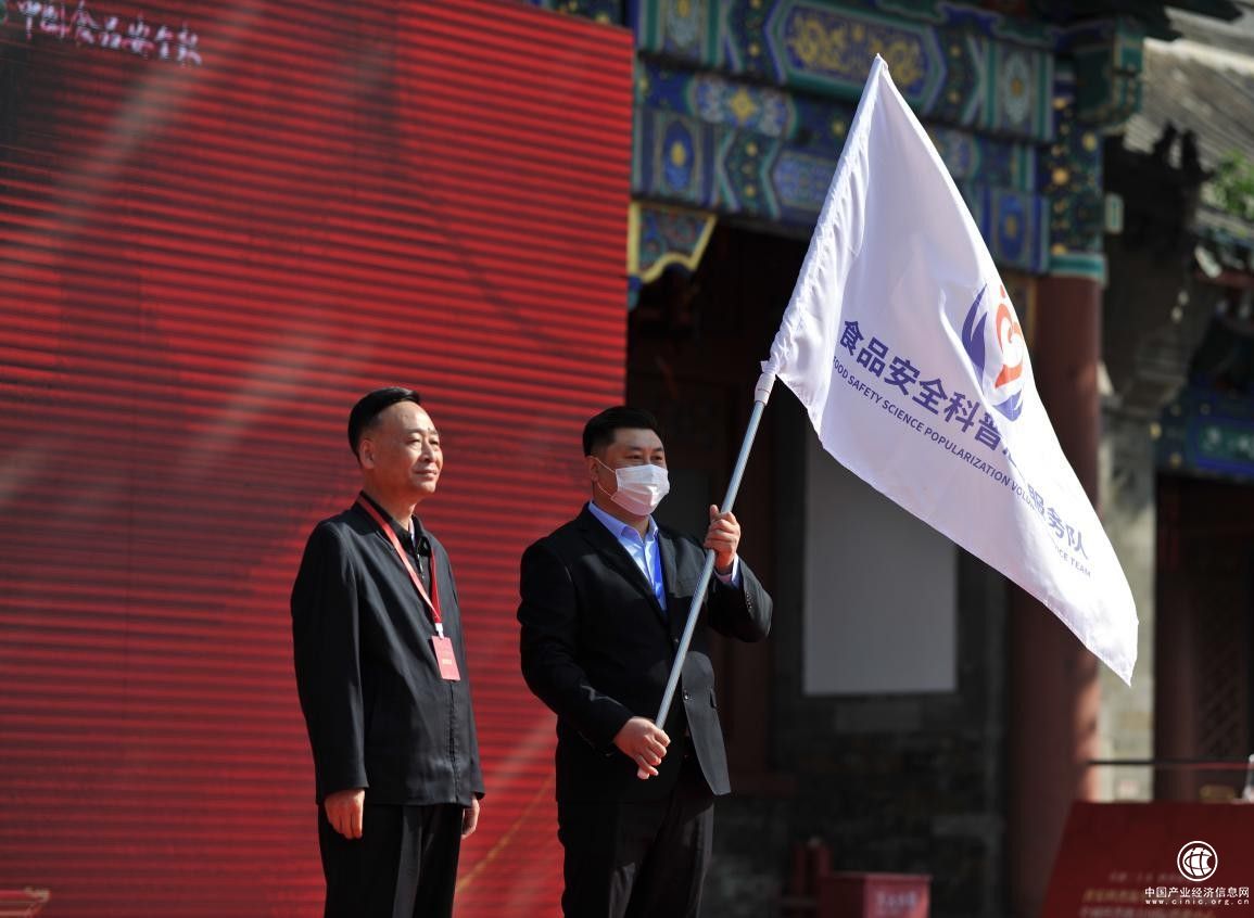 天津市科學(xué)技術(shù)協(xié)會黨組書記、常務(wù)副主席陸為民為食品安全科普志愿服務(wù)隊授旗