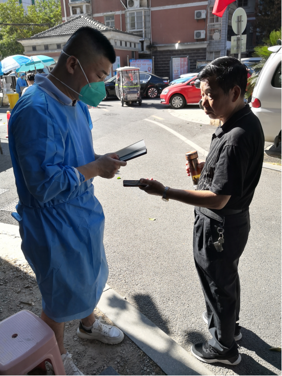 2022年國(guó)慶期間,漢陽(yáng)煙草黨員李清義下沉社區(qū)參與核酸檢測(cè)信息采集
