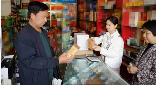 (胡月月在拜訪零售客戶,推介新品卷煙)