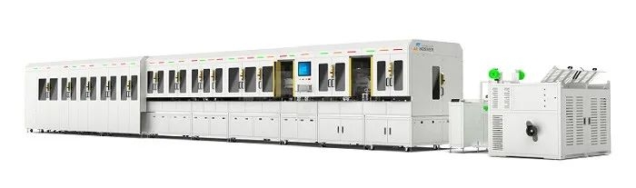 銀鋼智能近年來在新能源高壓線束加工及FAKRA互聯(lián)網(wǎng)通訊線束加工領(lǐng)域取得了不俗的成果,整線裝備以及圍繞線束加工的周邊配套設(shè)備都很成熟。例如10-70平方高壓線束磁懸浮智能整線是一條應(yīng)用于新能源10-70平方高壓線束加工的智能化生產(chǎn)線,可以實(shí)現(xiàn)自動(dòng)整圓剝外皮+自動(dòng)切鋁箔+鏈?zhǔn)狡帘苇h(huán)壓接+旋轉(zhuǎn)CCD檢測(cè)+自動(dòng)切編織網(wǎng)+自動(dòng)翻編織網(wǎng)+殘留清理+自動(dòng)纏膠布+剝內(nèi)皮+自動(dòng)端子壓接+旋轉(zhuǎn)CCD檢測(cè)+高壓檢測(cè)+載具升降工站+自動(dòng)下料帶不良品分離等16項(xiàng)+功能,生產(chǎn)線除了采用了銀鋼在高壓線束整線裝備應(yīng)用成熟的模塊化設(shè)計(jì),CCD視覺檢測(cè)技術(shù)、可視化智能操控系統(tǒng)外,首次采用磁懸浮輸送的方式,通用性強(qiáng),分成多段連接而成,載具采用磁懸浮不間斷運(yùn)送,夾爪夾線后從頭到尾不換夾。