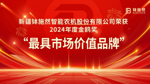 2025年1月12日,在“亞洲品牌經(jīng)濟峰會2025北京會議暨第十屆金鷗獎頒獎典禮”上,新疆缽施然智能農(nóng)機股份有限公司榮獲“2024年度最具市場價值品牌”獎項。這一殊榮的獲得,充分展示了缽施然在智能農(nóng)機行業(yè)中的卓越實力與市場影響力。