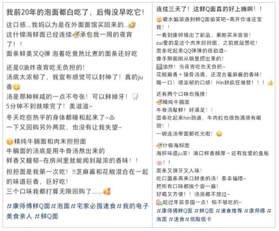 線下推廣加持下,鮮Q面的線上熱度也持續(xù)攀升,KOL和網(wǎng)友的試吃測(cè)評(píng)、反饋種草,引發(fā)了更多消費(fèi)者的熱烈討論和嘗鮮好奇?!翱粗秃孟恪?、“下次我也試試”……一套營(yíng)銷(xiāo)組合拳之下,下一波潛在消費(fèi)者也已經(jīng)在路上。