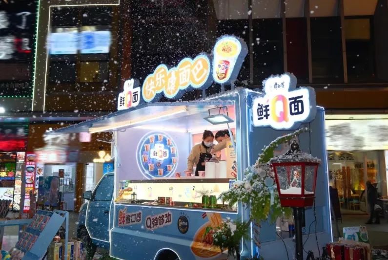 線下,康師傅的品牌推廣車(chē)“快樂(lè)康面巴”是一大亮點(diǎn),推廣車(chē)這種形式流動(dòng)性好,更有利于實(shí)現(xiàn)人群和場(chǎng)景的觸達(dá)。寒冬時(shí)節(jié),這輛車(chē)出現(xiàn)在商場(chǎng)、集市、游樂(lè)場(chǎng)等年輕人聚集地,被吸引而來(lái)的年輕消費(fèi)者前來(lái)體驗(yàn)鮮Q面的美味,很多人第一時(shí)間在社媒打卡、分享、反饋?!案F(xiàn)煮的口感一樣”、“吸滿了湯汁好入味”、“在冬日里吃到冒著熱氣的‘鮮Q面’”……大家好評(píng)不斷,溫馨幸福的氛圍直接拉滿,“鮮Q口感,宛如現(xiàn)煮”的認(rèn)知也悄然在消費(fèi)者中形成和擴(kuò)散。