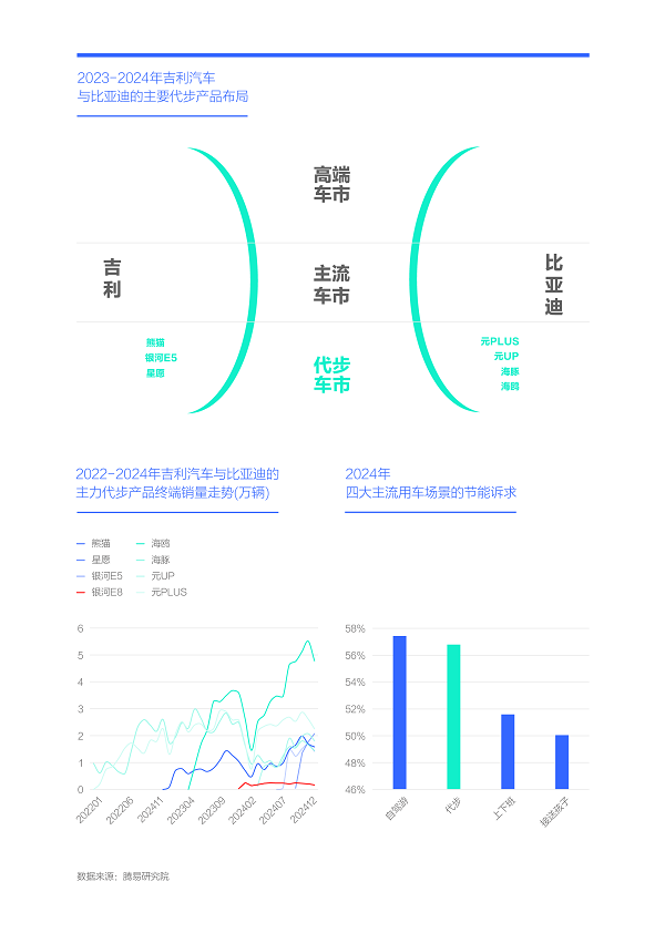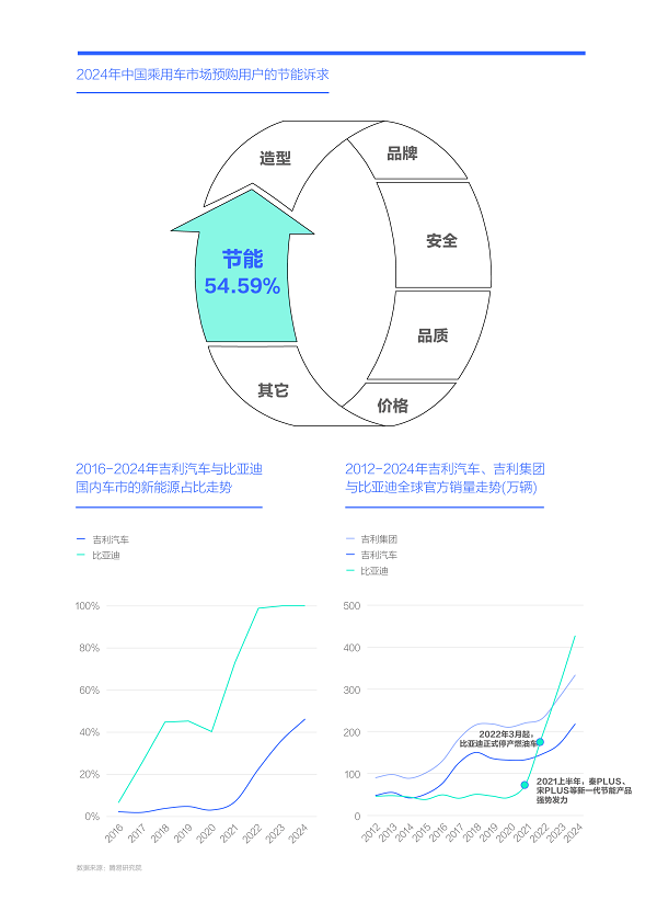 2024年中國車市的節(jié)能訴求高達54.59%,助力比亞迪于2021年起強勢崛起,并將曾經(jīng)的自主一哥吉利汽車按在地上摩擦