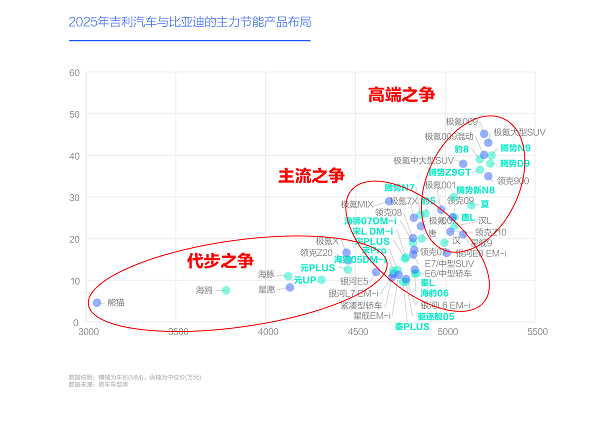 主打節(jié)能戰(zhàn)與價格戰(zhàn),從代步到主流再到高端,2025年吉利汽車全面“硬剛”比亞迪的戰(zhàn)略藍圖躍然紙上