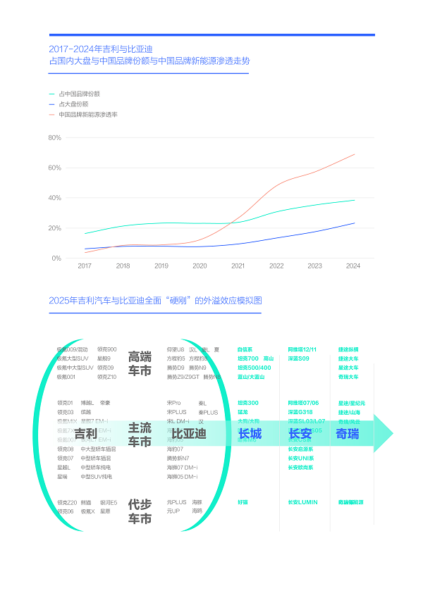 2024年吉利與比亞迪占了中國品牌近40%份額,兩者“硬剛”將重塑中國品牌陣營與助推2025-2026年中國品牌全面節(jié)能化